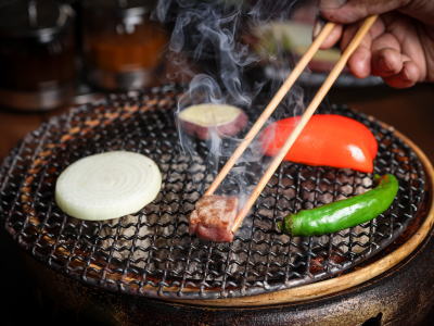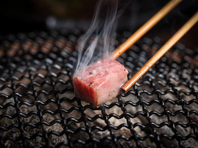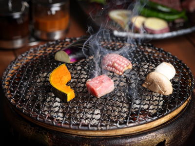 | 炭火焼の大きな魅力は、なんと言っても和牛の脂から生まれる炭火の燻香です。土佐備長炭から生まれるこの燻香は何にもかえがたい調味料です。 |